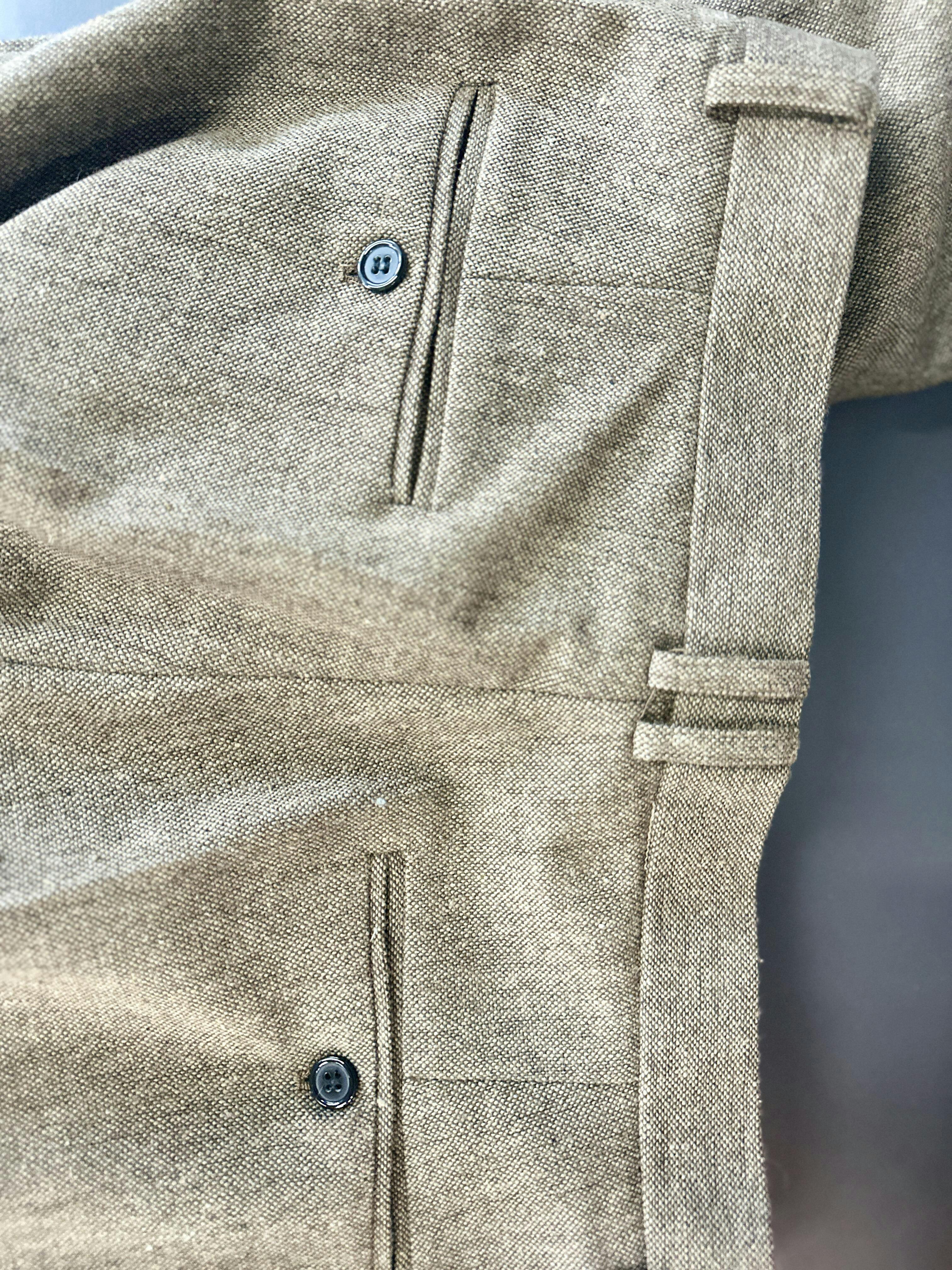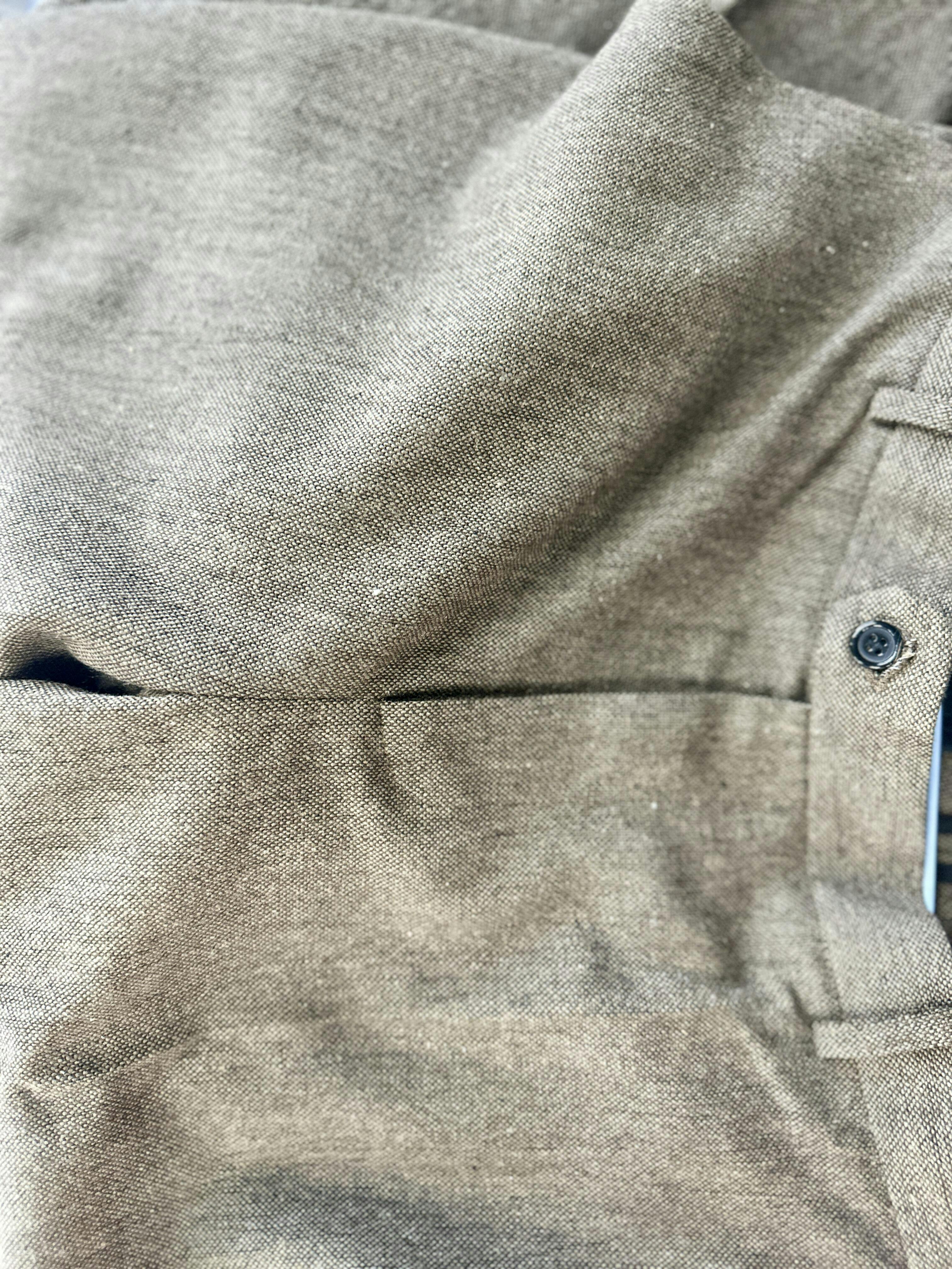 The herringbone brown suit I bought is very nice. I opened the package this morning, and the workmanship is excellent. My wife took the jacket and vest to wash, but she seems to have forgotten to wash the trousers. I'm taking a picture of the trousers and uploading it. It's a real photo of the suit I received, and the quality is indeed good. I can wear it many times. I highly recommend this suit!