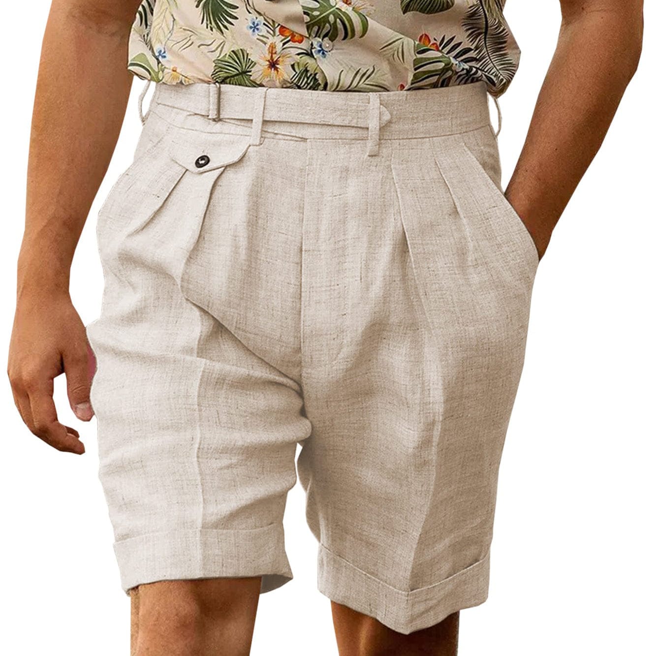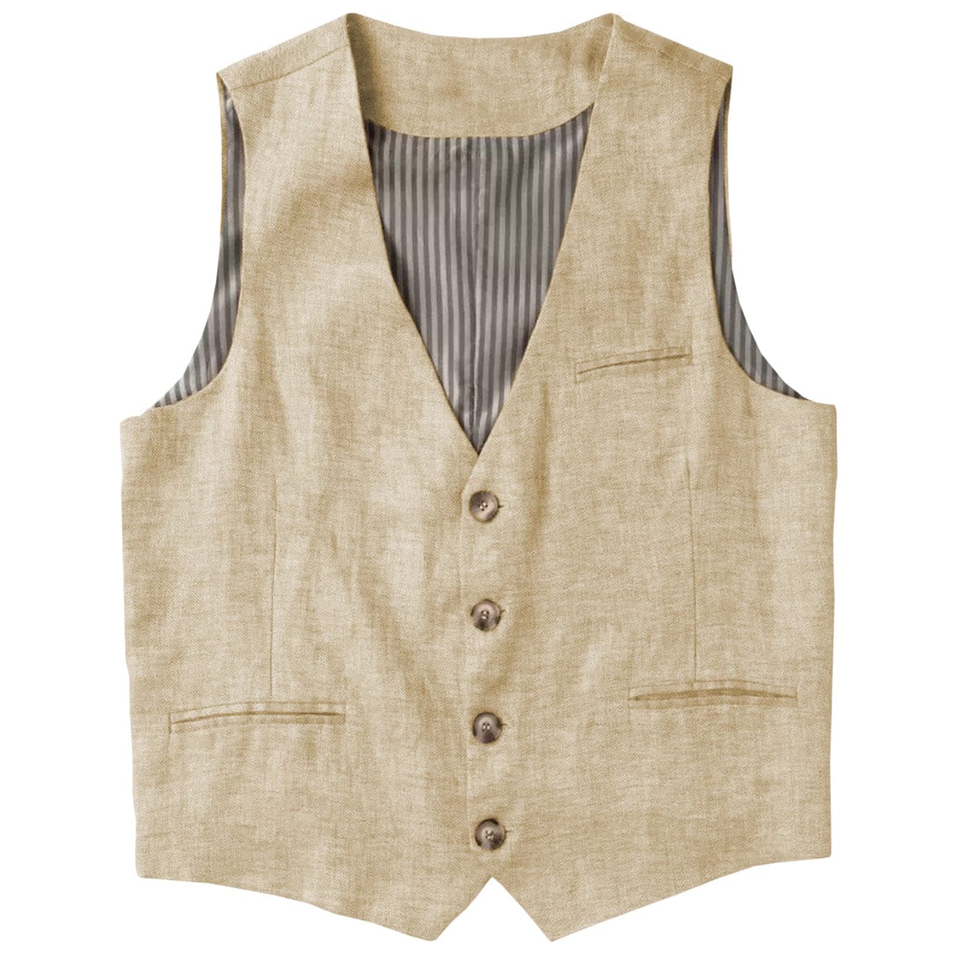 This Men's 2-Piece Green Summer Leisure Suit blends cotton-linen comfort with refined tailoring. Crafted from a breathable 40% cotton and 60% linen blend, the set features a peak lapel, double-breasted 4-button blazer with side vents for airflow. It includes practical patch, welt, and inside pockets, along with 4-button sleeve slits and a full lining. The matching pants offer a zipper closure, real hip and seam pockets, and are easy to care for with machine or hand wash. Ideal for stylish, relaxed summer occasions.